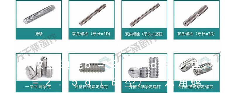 37.DIN 6928-90 六角頭法蘭面自攻螺釘 材料:滲碳鋼廠不銹鋼 38.GB898-88 雙頭螺柱 bm=1.25d 材料:鋼 機械性能:4.8 6.8 8.8 10.9 不銹鋼 機械性能:A2-50 39.鋼結構用扭剪型高強螺栓連接副 GB3632-83 梯形螺紋、鋸齒形螺紋、矩形螺紋、三角形螺紋、短(或矮)牙螺紋、60°及55°螺紋等.3) 配合性質或型式法分為:過渡配合螺紋、過盈配合螺紋、間隙配合螺紋、“錐/錐”配合螺紋、“柱/錐”配合螺紋、“柱/柱”