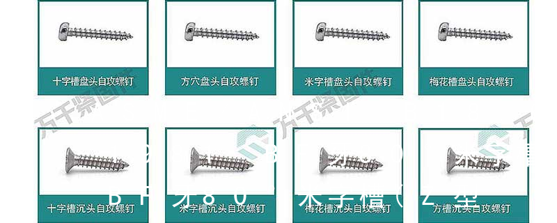 名稱:1.機(jī)螺釘 2.自攻螺釘 3.鉆尾螺釘 4.墻板釘 5.纖維板釘 6.木螺釘7.六角木螺釘 8.不脫出螺釘 9.組合螺釘 10.微型螺釘 11.家具螺釘 12.電子螺釘頭型:1.六角頭(hexagon head) 2.六角頭法蘭面(hexagon head with flange) (鐵板牙自攻螺絲) B-2: Plastic Tapping Screw. (塑膠用,自攻螺絲) C: Wooden Screw : 木工螺絲 D: Drywall Screw :水泥墻螺絲 E: Self Drilling Screws鉆尾螺絲(不銹鋼鉆尾螺絲,復(fù)合材料鉆尾螺絲) F:膨脹螺絲,四片膨脹螺絲又