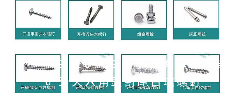 主要分類包括普通螺絲、機螺絲、自攻螺絲和膨脹螺絲三種。有頭螺釘Cap screw 過去限于全牙的扣件。六角頭螺釘Hex cap screw與大六角螺栓Hex bolt 顧名思義為頭部為六角型的外螺紋扣件,設計為使用扳手轉動。依照ASME B18.2.