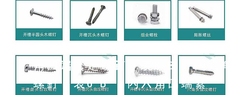 ⑤螺柱類:雙頭螺栓、等長雙頭螺柱(A型B型)、特長雙頭(銅、鐵、鋁、不銹鋼)⑥、緊定螺釘類:內六角平端緊定螺絲、內六角尖端緊定螺絲、內六角凹端緊定螺絲、⑦、銷類:開口銷、圓柱銷、圓椎銷、彈性圓柱銷、銷軸、 緊定螺釘通常由鋼或不銹鋼材料制造,它的端頭形狀有錐形、凹形、平頭形、圓柱形和階梯形等。錐端或凹端緊定螺釘的端頭直接頂緊零件,一般用于安裝后不常拆卸處;平端緊定螺釘的端頭平滑,頂緊后不損傷零件表面,用于需經
